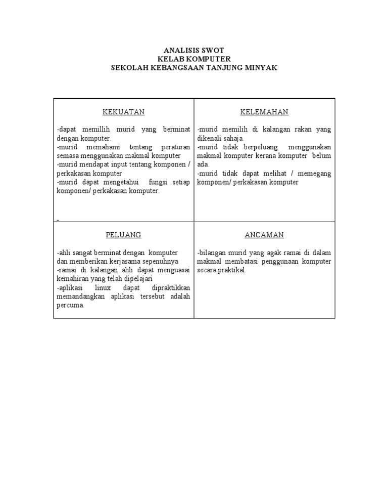 Related : Contoh Analisis Swot Dalam Perniagaan / Tujuan dan manfaat analisis swot..