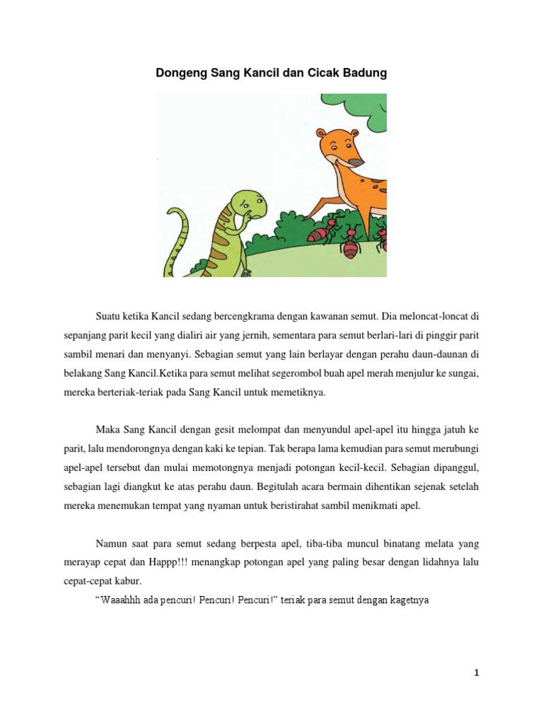 Dongeng Sang Kancil Dan Cicak Badung Pdf from imgv2-2-f.scribdassets.com Check spelling or type a new query. Maybe you would like to learn more about one of these? Kisah dongeng sang kancil dan cicak badung. We did not find results for:
